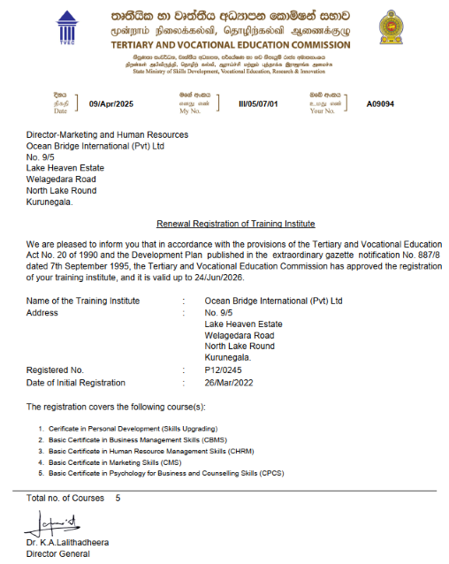 - Our courses are TVEC-approved in Sri Lanka and internationally recognized.