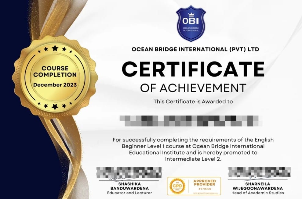 Ocean Bridge International is a government-recognized institute, officially registered with the Tertiary and Vocational Education Commission (TVEC) of Sri Lanka and internationally accredited by the CPD Group (UK).